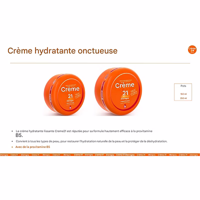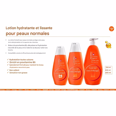Crème 21 peau sèche La lotion corporelle protège votre peau contre la déshydratation et ajoute des vitamines.